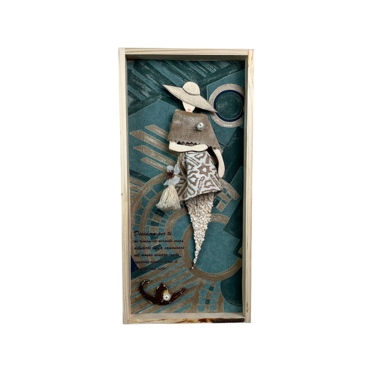Le nostre geniette sono realizzate su base di legno di abete ricoperta di carta da parato di recupero. Gli abitini sono confezionati con tessuti di pregio riciclati e tanti piccoli accessori di scarto, motivo per cui ogni creazione è unica ed originale. Scegli quella che fa per te emozionandoti con le frasi dedicate. Le misure sono 17×35 cm e sarà confezionata in una scatola di cartone riciclato.