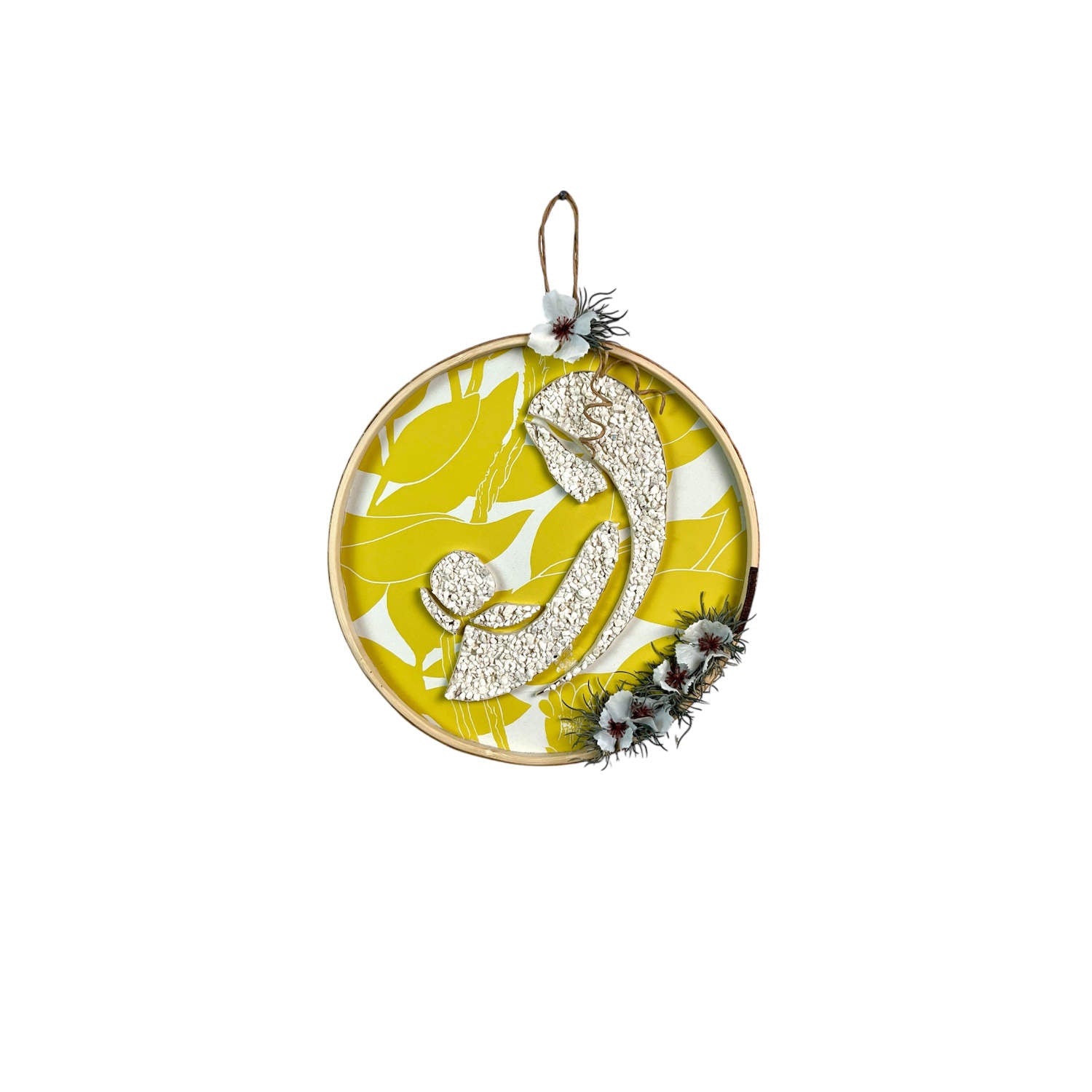 Natività realizzata con carta da parato pregiata, ghiaia avorio e fiori abbinati. regalo perfetto per Natale, ma che si può tenere in casa tutto l' anno grazie ai suoi colori non tipicamente natalizi. Misura del telaio 25 cm
