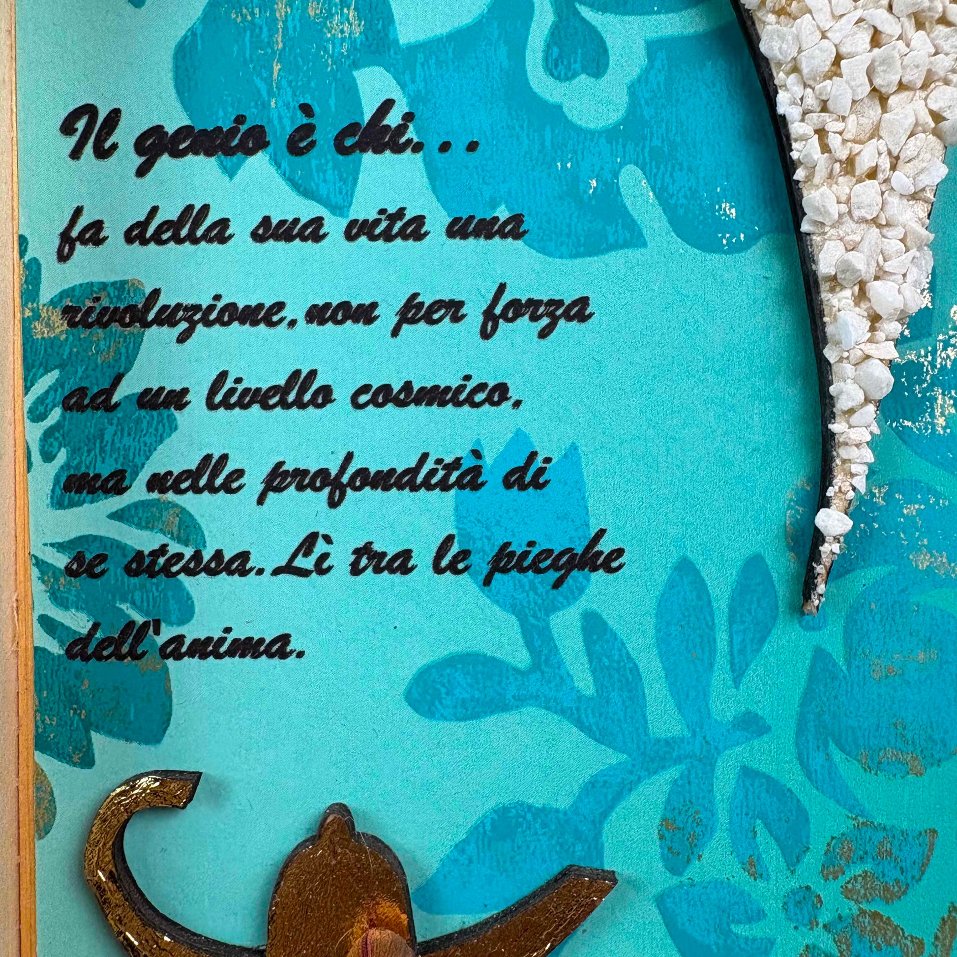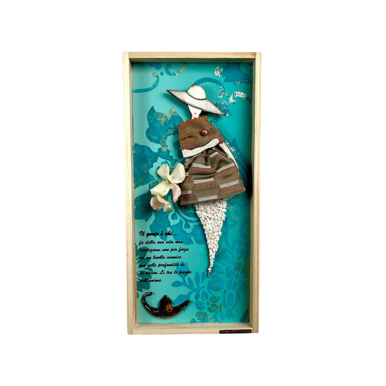 Le nostre geniette sono realizzate su base di legno di abete ricoperta di carta da parato di recupero. Gli abitini sono confezionati con tessuti di pregio riciclati e tanti piccoli accessori di scarto, motivo per cui ogni creazione è unica ed originale. Scegli quella che fa per te emozionandoti con le frasi dedicate. Le misure sono 17×35 cm e sarà confezionata in una scatola di cartone riciclato.