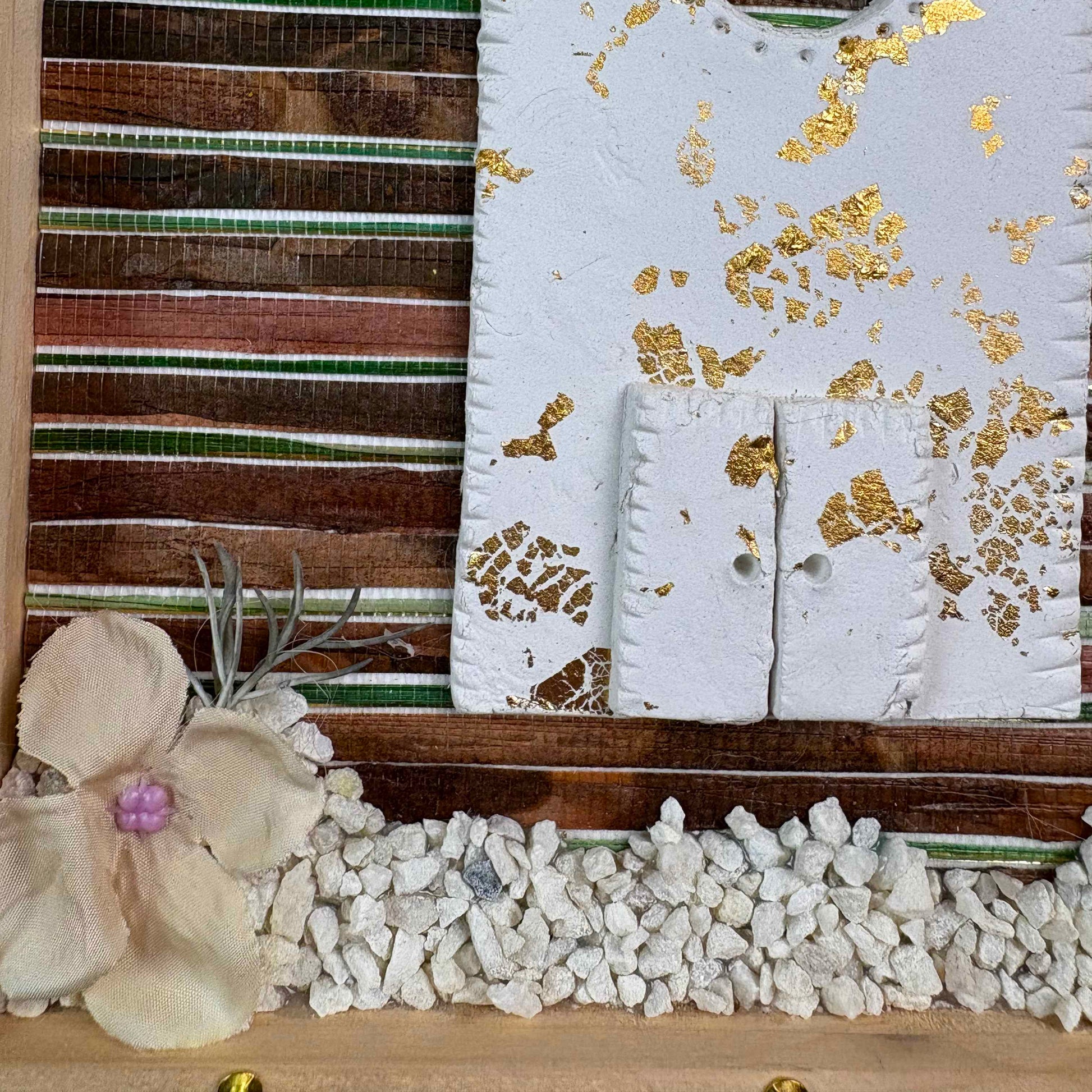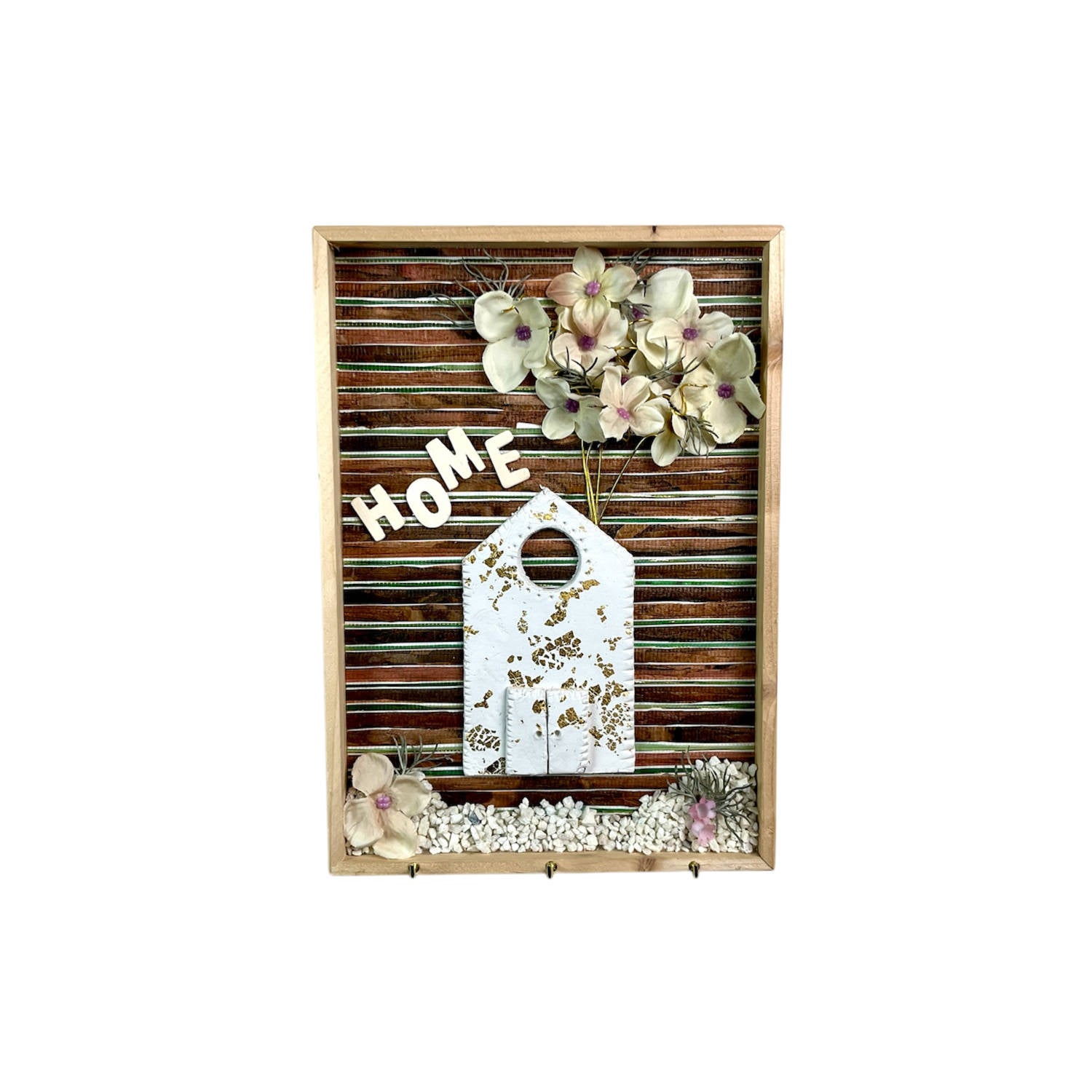 Appendichiavi realizzato su base di legno di abete, carte da parati pregiate di riciclo, tre appendini e tanti dettagli che invogliano a tornare sempre a casa. Misure 19x27 cm, scatola inclusa.