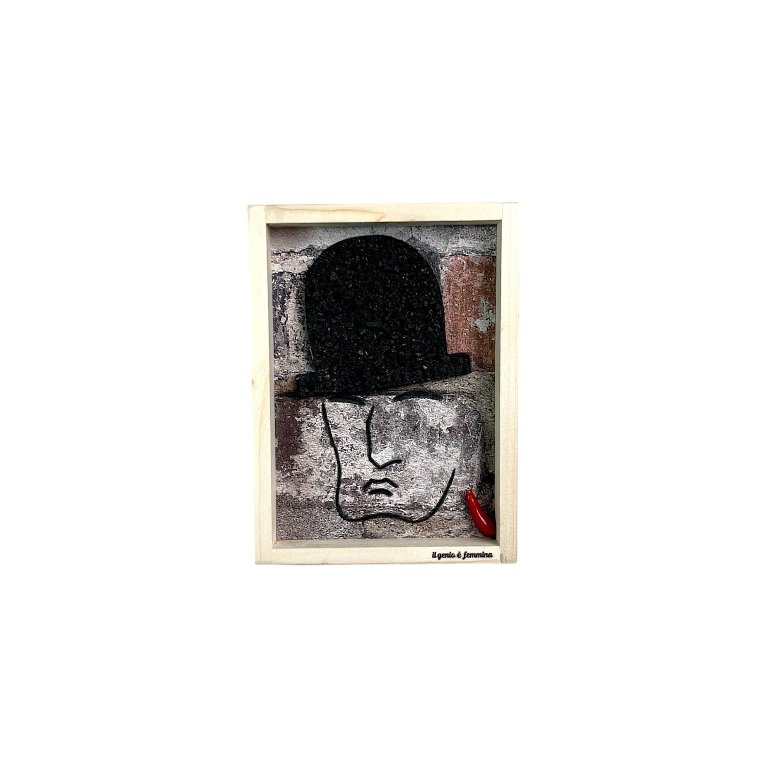 Tutti i lavori Made in Naples, sono realizzati su base di legno di abete utilizzando carte, tessuti e accessori di riciclo. I soggetti rappresentati, sono realizzati con lapillo vulcanico raccolto in terreni limitrofi al Parco Nazionale del Vesuvio. Misure 14x19 cm ,scatola inclusa.
