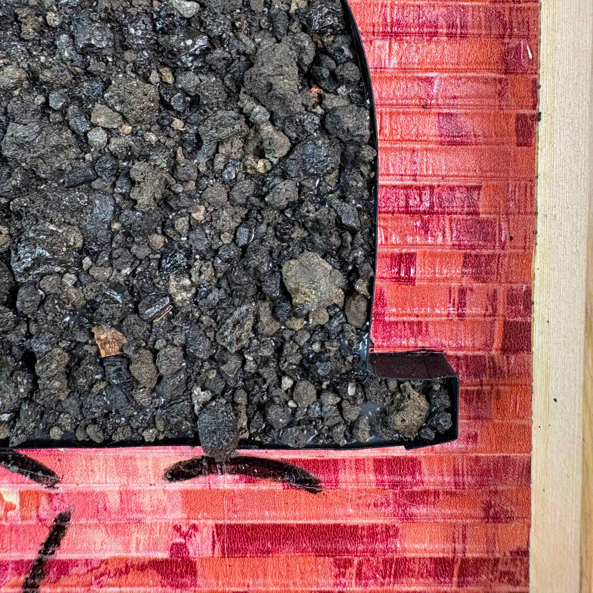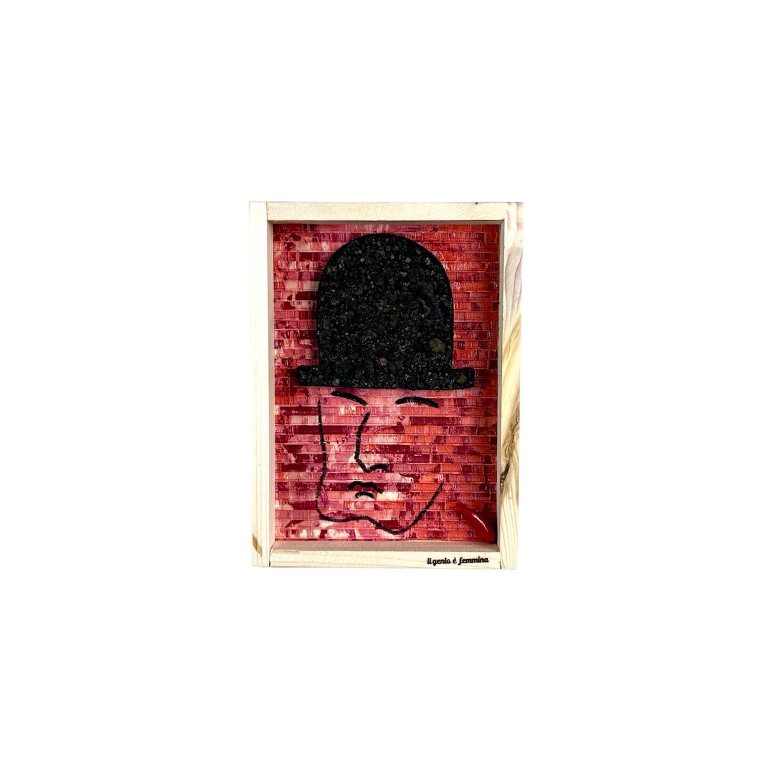 Tutti i lavori Made in Naples, sono realizzati su base di legno di abete utilizzando carte, tessuti e accessori di riciclo. I soggetti rappresentati, sono realizzati con lapillo vulcanico raccolto in terreni limitrofi al Parco Nazionale del Vesuvio. Misure 14x19 cm ,scatola inclusa.